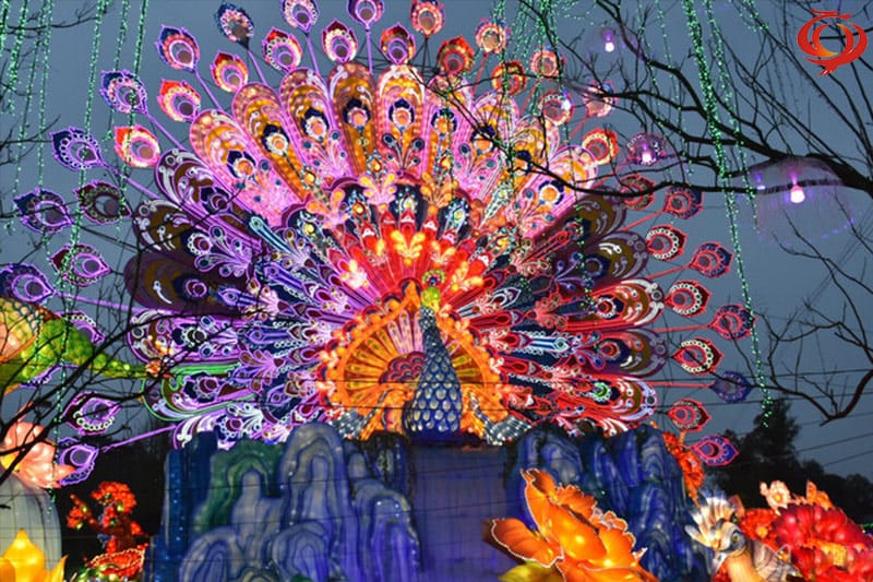 孔雀开屏主题元素花灯