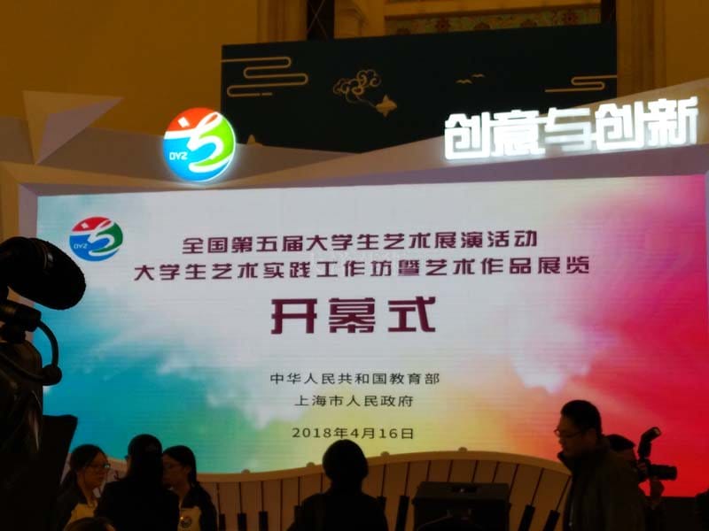 4月16日,,,,,教育部党组成员、部长助理刘大为,,,,,上海市副市长翁铁慧,,,,,上海市教育卫生事情委员会书记虞丽娟,,,,,教育部体育卫生与艺术教育司司长王登峰,,,,,与四川理工学院美术学院学生何建华、南京航空航天大学学生代表配合为天下第五届大学生艺术展演运动暨大学生艺术实践事情坊、艺术作品展揭幕。。。。。。