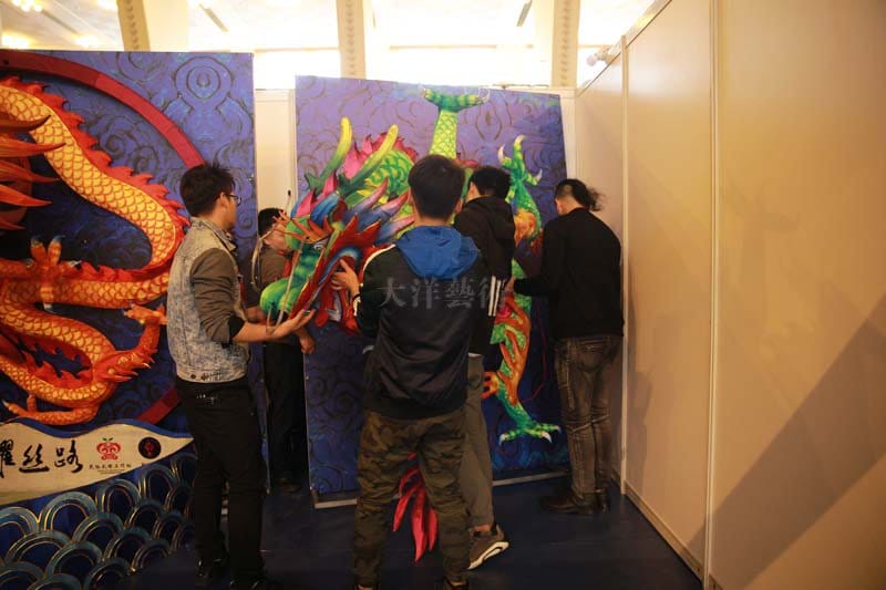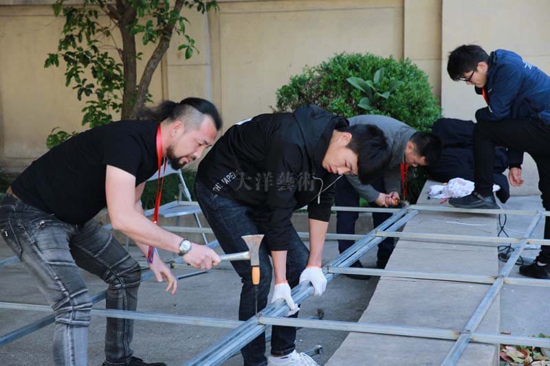 4月13日,,,,,师生团队一行抵达参展园地,,,,,在江毅、杨剑、黄磊三位先生的指导下,,,,,师生同心协力,,,,,主要有序的举行布展事情。。。。。 。。 。