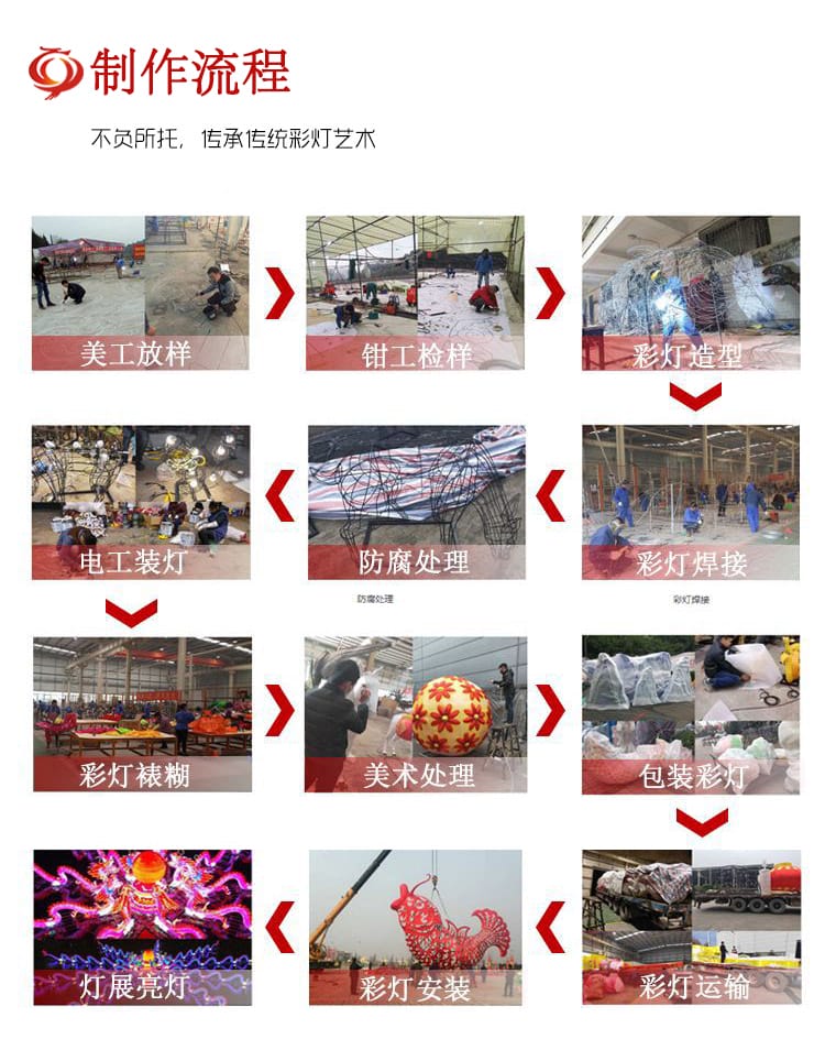 本公司设计、制作、装置的节庆景观项目众多,,,,,,,可是公司始终本着“开拓立异,,,,,,,追求完善”的设计理念,,,,,,,“以质量求生涯,,,,,,,以信誉求生长”的谋划态度,,,,,,,依附超前的设计构想、合理的预算报价、优异的制作工艺,,,,,,,优质的效劳,,,,,,,深受宽大客户的青睐!接待各界朋侪和我们建设并生长营业关系,,,,,,,本公司接待您的到来!